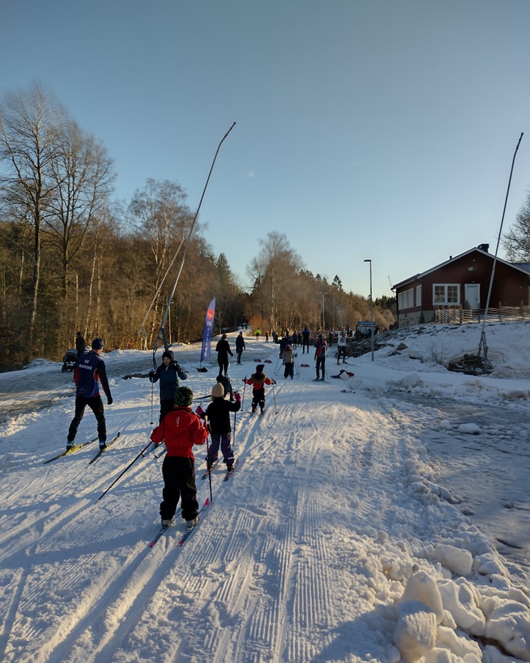 Samling Samlas utanför bussen. En funktionär möter upp vid Vallaboden (om en lärare går med) och leder gruppen rätt till Eken (Värmestuga och skidutlåning). OBS! Gå inte i skidspåren.