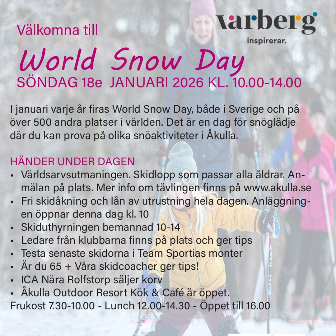 I januari varje år firas World Snow Day, både i Sverige och på över 500 andra platser i världen. Det är en dag för snöglädje där du kan prova på olika snöaktiviteter i Åkulla.